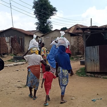 The outreach to IJAH community was held on 13th of SEPTEMBER 2025. The chairman, GOLAN HELPS INITIATIVE, and CEO, Golan Abuja Food Bank Initiative, with 5 Volunteers started arriving the warehouse at about 08:30 am, by 10:00 am, volunteers left the warehouse for IJAH.